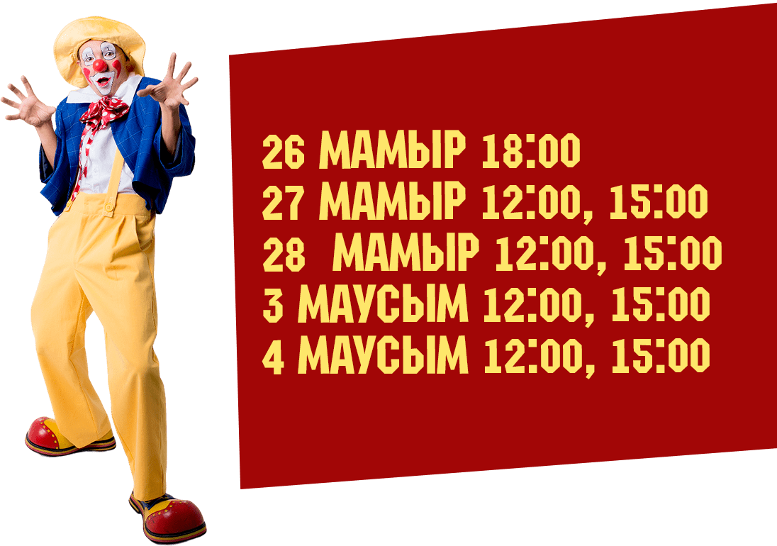 На нашей арене вас встретят потрясающие артисты разных жанров. Вас заворожат невероятные трюки эквилибристов и ловкость виртуозного жонглёра, вдохновят смелые и изящные номера воздушных гимнастов, а искусный фокусник откроет двери в мир загадок и тайн. И, конечно же, невозможно представить цирк без весёлых и харизматичных клоунов, которые подарят каждому зрителю яркие эмоции, искренний смех и отличное настроение!
